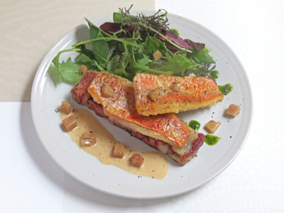 - Démoulez sur une assiette, nappez d'une cuillerée de sauce Mornay légère, disposez un cordon de sauce Nantua autour de chaque pièce et gratinez.