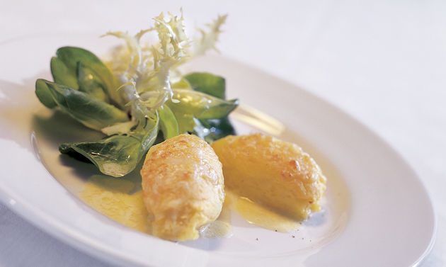 - Place the spinach in the middle of the serving dish. Lay the medallion slices around it, and, finally, add the wine sauce on the border you just created.