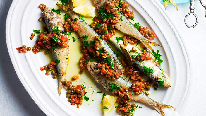 - Farcissez la daurade avant la cuisson avec les herbes : du thym, du romarin, du fenouil séché et du persil.